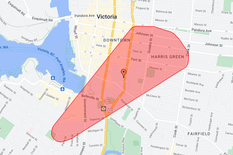 Bird on a wire blamed for power outage in downtown Victoria Oak