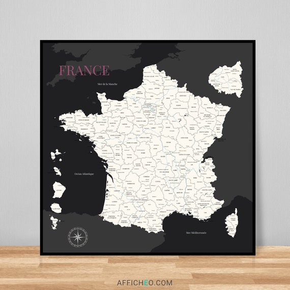 Buy Map of France, Map of France Departments, Detailed Decorative