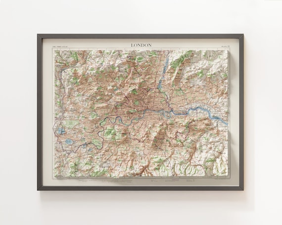 Topographic Map of London c.1955 Vintage Map Shaded Relief Map Etsy