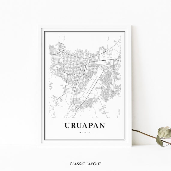 Uruapan Mexico Map Print, Michoacán México Map Art Poster, City